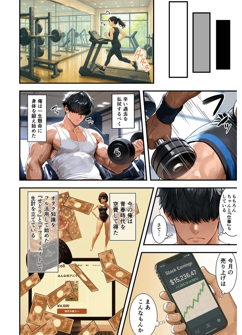 学生時代にイジメられ、引きこもりだった主人公・山田。幼なじみジュリアにフラれたことも引き金に、人生の底を味わってきた彼だが、今や筋トレ&アフィリ成功で肉体も経済力も大逆転。