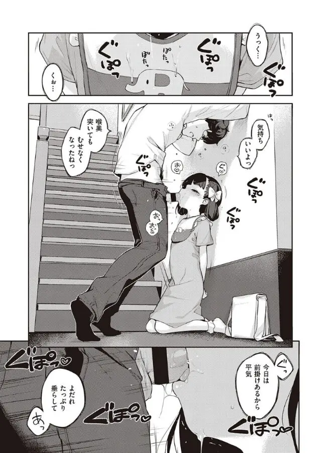柚葉ちゃんは、決して無理やりやらされているわけじゃないんです。自分が何をされているか理解した上で、「大好きな先生のためなら」と一生懸命に頑張っちゃう。 その健気さが、逆に背徳感を煽るんですよね。特に「フェラ」のシーン。小さな体で一生懸命に奉仕する姿は、まさに「ミニミニオトメ」の真骨頂。表情一つひとつに愛おしさが詰まっていて、読んでいるこっちまで「俺、最低だな……」と思いつつ、ニヤけが止まりません。