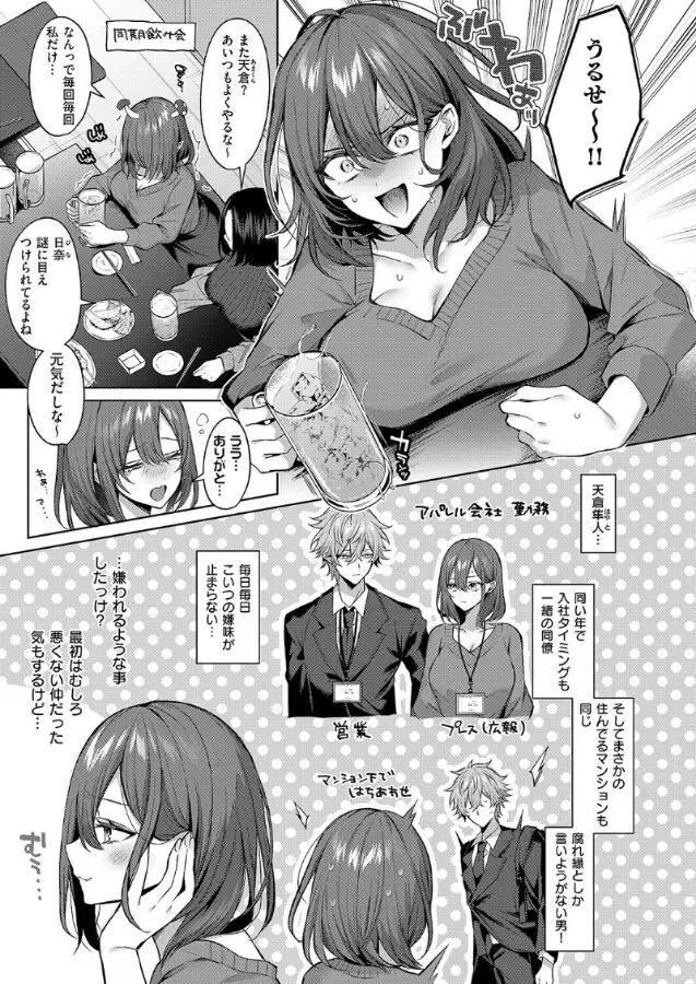 アパレル会社に勤務する月森日奈は、仕事はできるけど口が悪い同期・天倉隼人に日々悩まされていました。「チクチク言葉」で攻めてくる彼に悶々とする毎日。