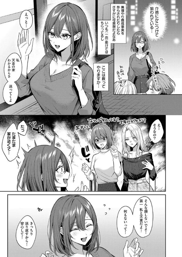 介抱を終えてベッドに寝かせた瞬間、状況は一変!普段の毒舌が嘘のように、天倉が「好き好き」と甘い声で日奈に抱きついてきて……。あまりのギャップと情熱的なアプローチに、日奈のガードも、服も、あっけなく解けてしまいます。