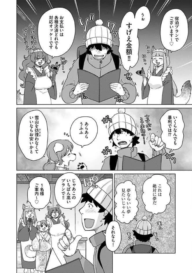 そこは、この世とあの世の境目のような不思議な場所で、出迎えてくれたのはなんと超絶美人の獣人お姉さんたち!「ここは天国か?」と疑う主人公ですが、極上のご飯と温泉、そして何より「追加料金」で受けられる最高のサービスが彼を待っていたのです。