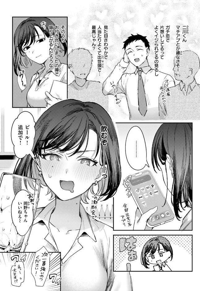 彼女が求めているのは、ドロドロの感情じゃなくて「身体の相性」。マッチングアプリや、エロ自撮りを投稿する裏アカで理想のモノを探す日々を送っています。そんなある日、出世した後輩・二川くんの激励会で泥酔。介抱してくれた彼から衝撃の事実を告げられます。