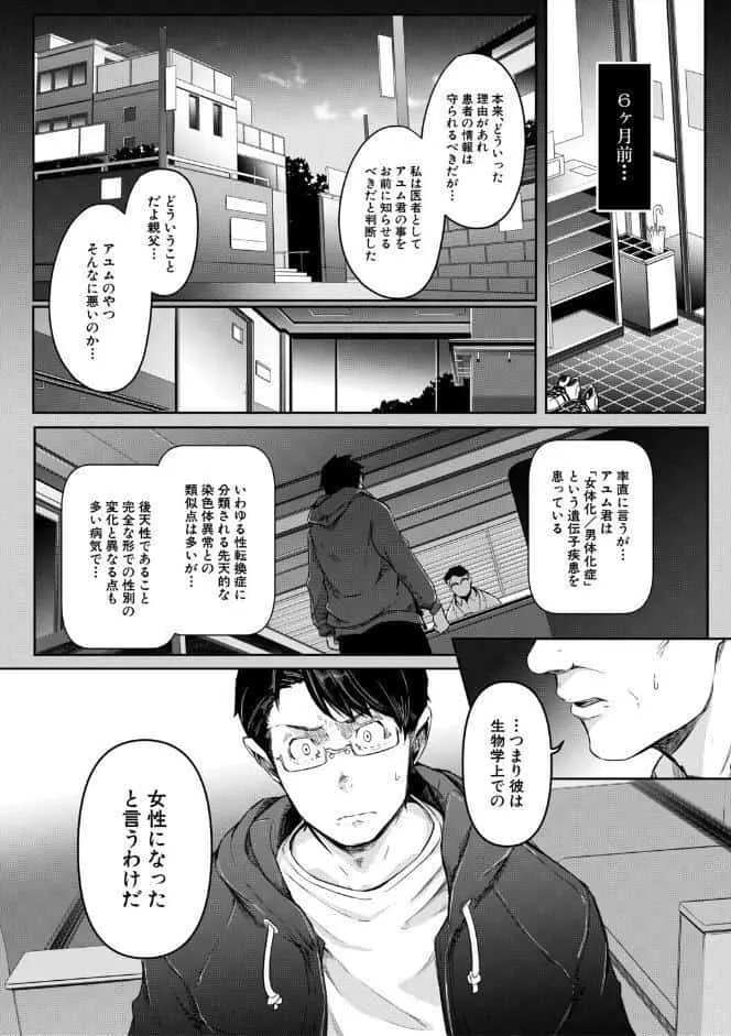 あらすじをザックリ説明すると、仲良し幼なじみ4人組(アユム、スズネ、コウイチ、ハナ)のうち、主人公のアユムが突然「遺伝子疾患」で女の子になっちゃうところから物語はスタート。