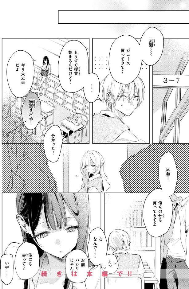 ストーリーのテンポも良すぎて一気読み確定。前半の「パシリ」としての背徳感あるやり取りから、後半の「嫉妬と独占欲」が見え隠れする保健室のシーンへの流れが美しすぎる。恋を知らないはずの彼女が、無自覚に恋の熱に浮かされていく様子が、28ページという短編の中に凝縮されてるんだ。