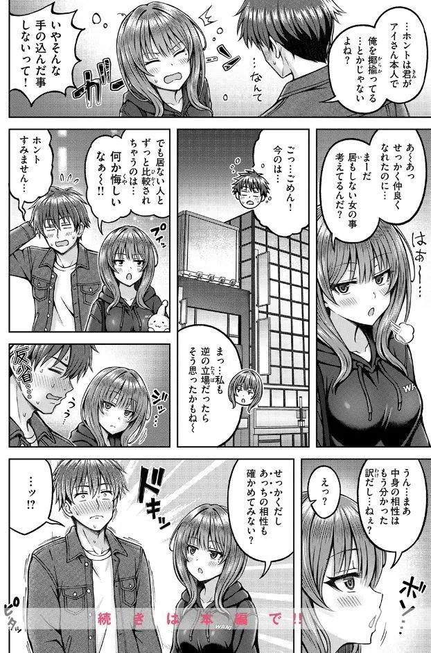 実は、アイさんの正体はディープフェイクを使った悪戯。ショックを受ける主人公ですが、マミさんもまたデートをドタキャンされたばかりの被害者。意気投合した二人は、そのままリアルなデートを続行することに!「スケベ同志、最後の相性確認しちゃおっか♪」という甘い誘いから、生身の人間同士でしか味わえない、最高にディープな時間が始まります。