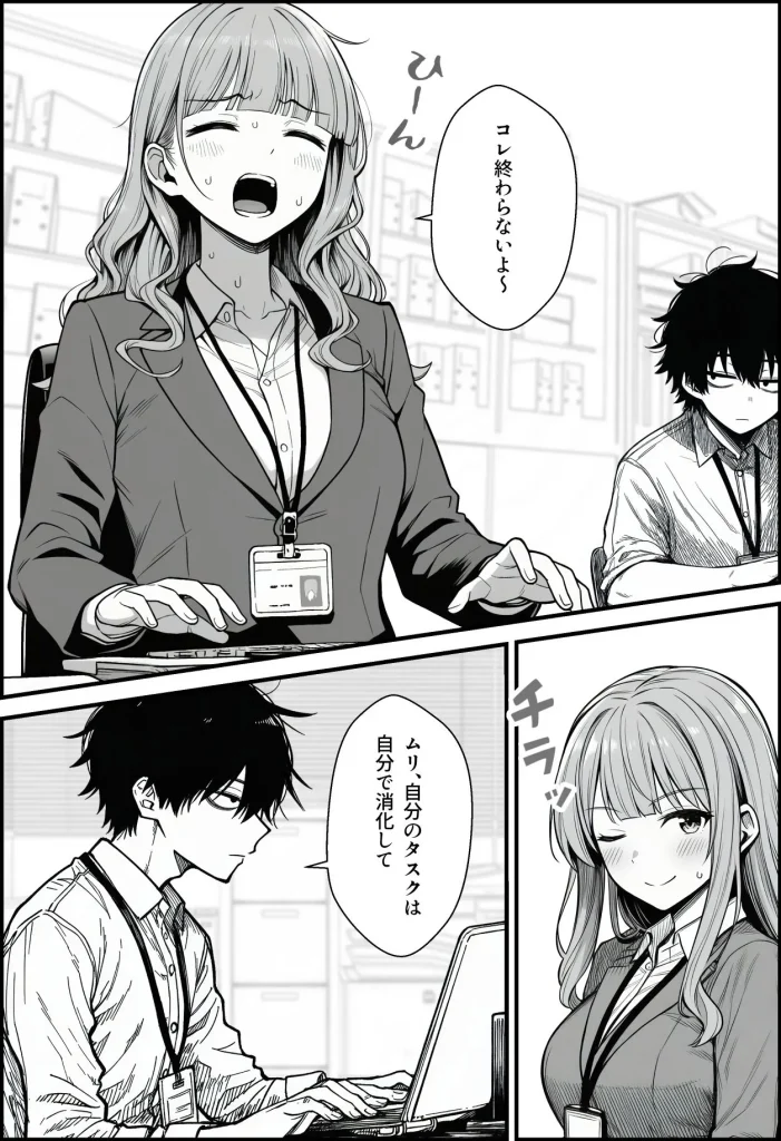実際にありそうなアプリ開発会社を舞台に、主人公は日々女上司と同期女子社員から執拗に業務を押し付けられる。