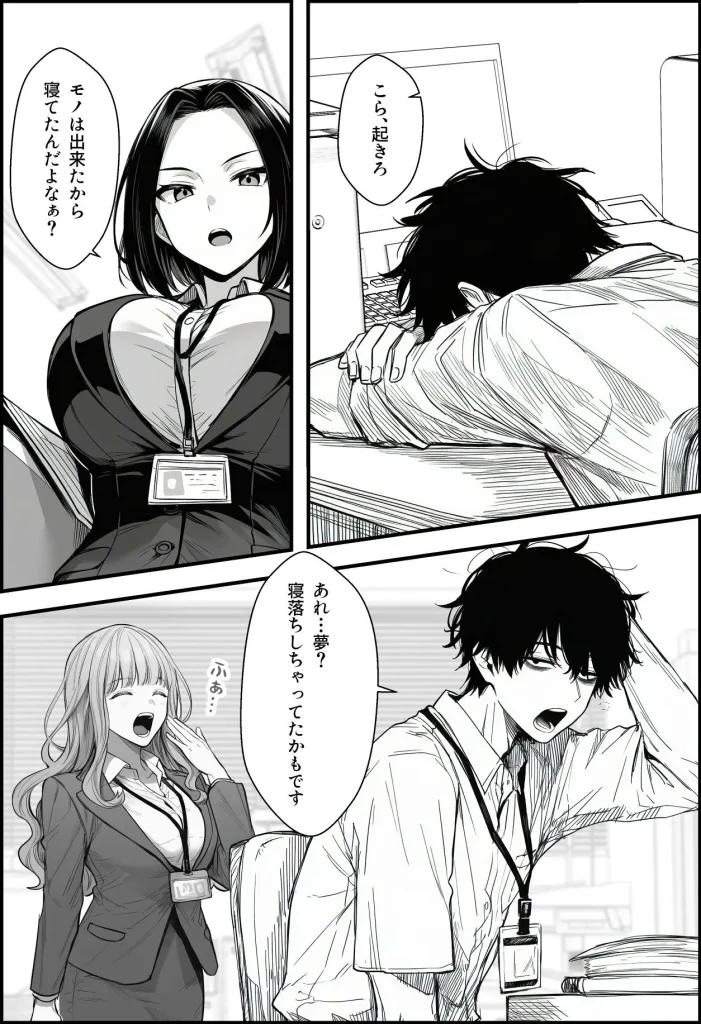 ブラック企業で働く主人公。毎日理不尽に残業をさせられ、定時退社していく女上司と同期の笑顔を見送ることしかできない。